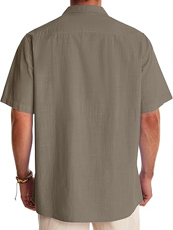 Mens Linen Shirts Short Sleeve Button Down Shirts