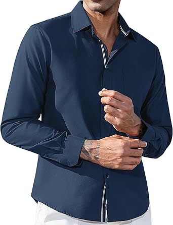 - Suitable for occasions: With classic men’s shirts design, adding contrasting color elements, this mens dress shirts effortlessly combines fashion and versatility to add a touch of sophistication to your outfit, suitable for casual wear, business, outting, dating, holidays, parties, dates etc